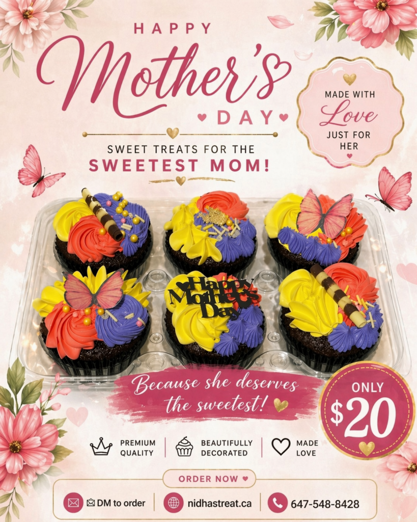 At Nidha’s Treat in Cambridge, we believe Mother’s Day is the perfect time to say thank you in the sweetest way. To celebrate all the incredible moms out there, we’re offering a special selection of Mother’s Day-themed cakes and cupcakes, lovingly handcrafted to bring a smile to her face.